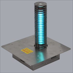 大部分大的微粒物由前置G3金属初效截留;更小的微粒随气流到达集尘室的第一段-电离段,通过一系列的高能离化丝-工作电压大于8000V-被电离。